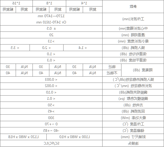 全光构造;低插入损耗;高宽带传输;通道隔离度高;高稳定性及高可靠性