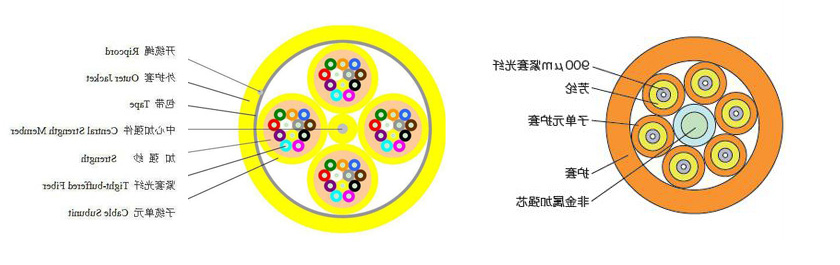 利用单芯线缆电缆 (Φ0.9mm 紧套光钎、Φ2.0mm子缆,芳纶提高构件 ) 有所作为子机组,非合金重点提高芯,线缆电缆子机组层绞于重点提高芯出现缆芯,最外挤制1层聚氯乙稀(PVC)或低烟无卤资料(LSZH,低烟、无卤、防火等级)保护套而成。
