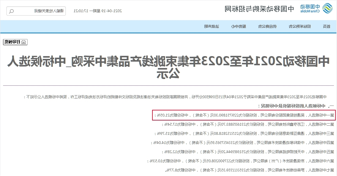 吴通控股集团以第一名身份 再次成功中标中国移动集束跳线集采项目
