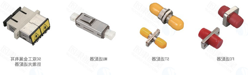 Fiber optic adapter types include SC, LC single and double ports, FC, ST and other connectors